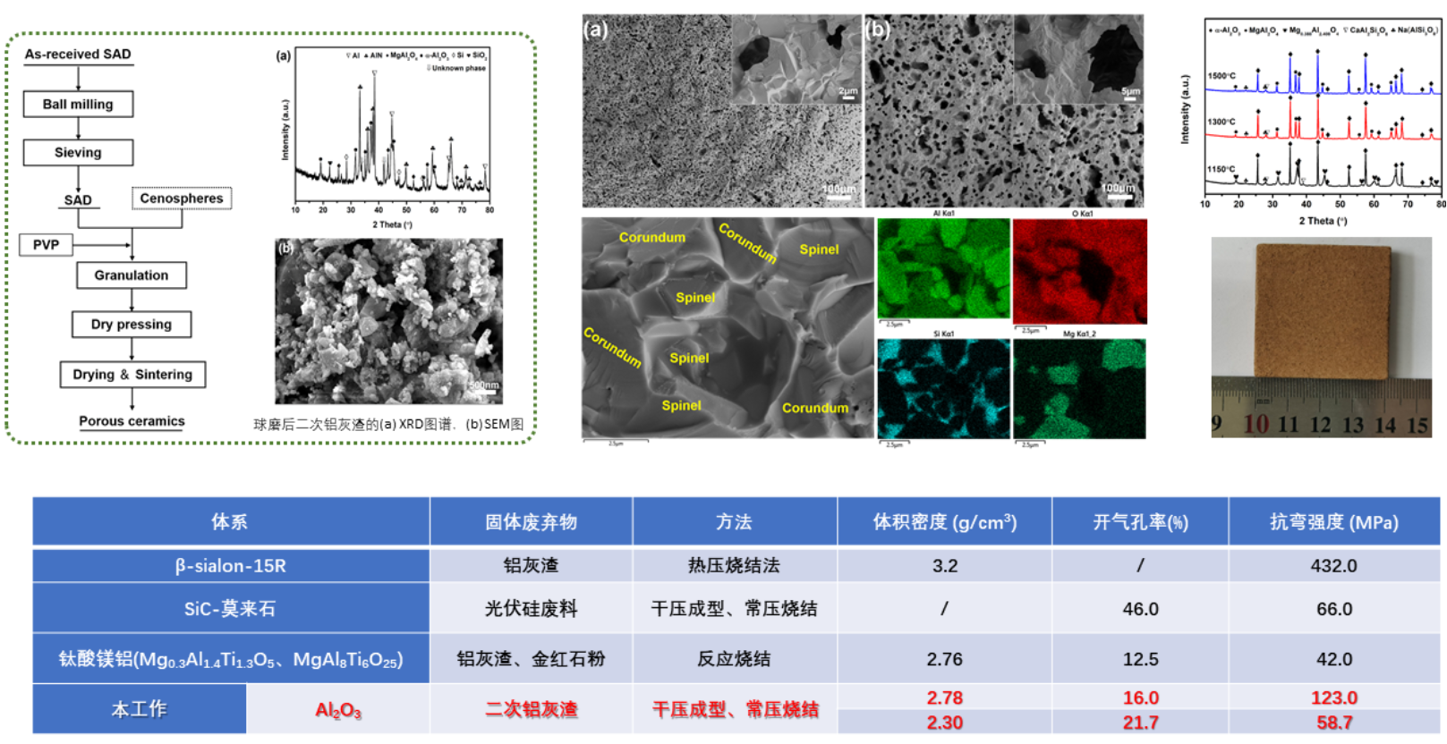 提出了一种高效简便循环利用二次铝灰渣制备低收缩多孔陶瓷的方法,有效发挥二次铝灰渣成分特点,实现多孔结构的构建以及重金属离子的固化,为资源循环利用提供新途径。