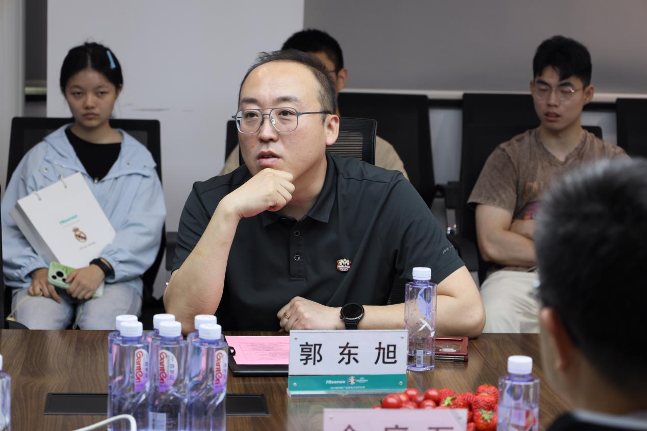座谈会上,海信国际营销副总裁金庭万分享了企业“全球生产基地+多品牌并购+体育营销”的国际化实践历程;空调业务运营中心副总经理李克兵介绍了公司业务发展方向并希望加强人才培养合作;冰冷业务运营中心产品规划部总经理冯焕屏阐述了企业人才培养模式及用人需求;人力资源部HRBP经理姚玲娜解析产品经理等核心岗位能力要求并介绍企业人才培养体系。校友梁欣桐结合校招经验及在企业成长经历,为学弟学妹提供职业规划建议。