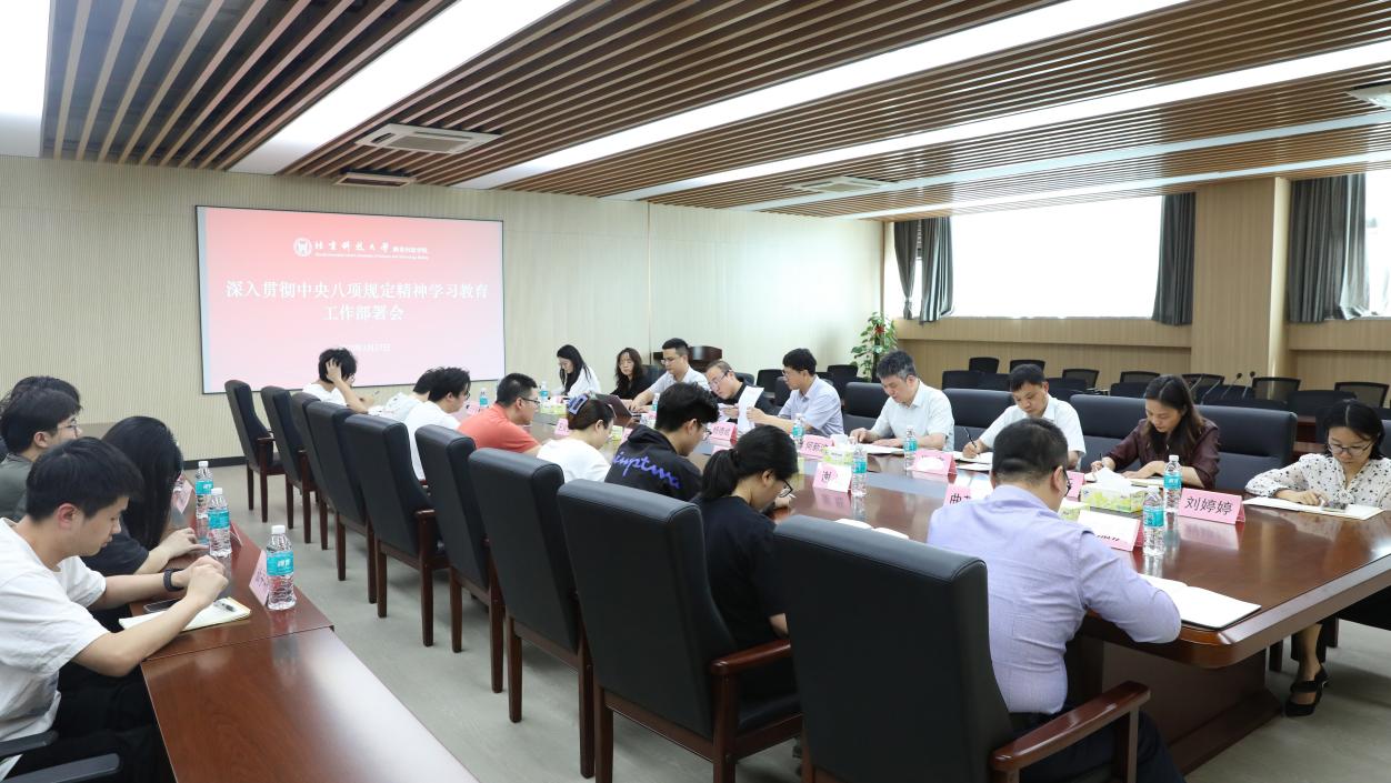 会议指出,在全党开展深入贯彻中央八项规定精神学习教育,是党中央作出的重大决策部署。习近平总书记亲自谋划确定学习教育主题,发表重要讲话,作出重要指示,为开展学习教育指明了方向,提供了根本遵循。要以高度的政治自觉、思想自觉、行动自觉,扎实开展好学习教育,切实改进工作作风,为推动学院高质量发展营造风清气正的政治生态和育人环境。
