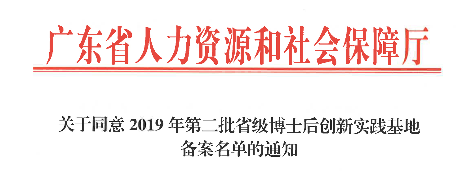 2019年6月,根据《关于做好广东省博士后创新实践基地管理服务工作的通知》(粤人社规〔2017〕6号)要求,香蕉视频 开展了博士后创新实践基地申报工作。经过香蕉视频 推荐、专家评审和佛山市人力资源和社会保障局的严审把关,10月25日,接省人力资源和社会保障厅下发的《关于同意2019年第二批省级博士后创新实践基地备案名单的通知》,香蕉视频 正式获批设立博士后创新实践基地。