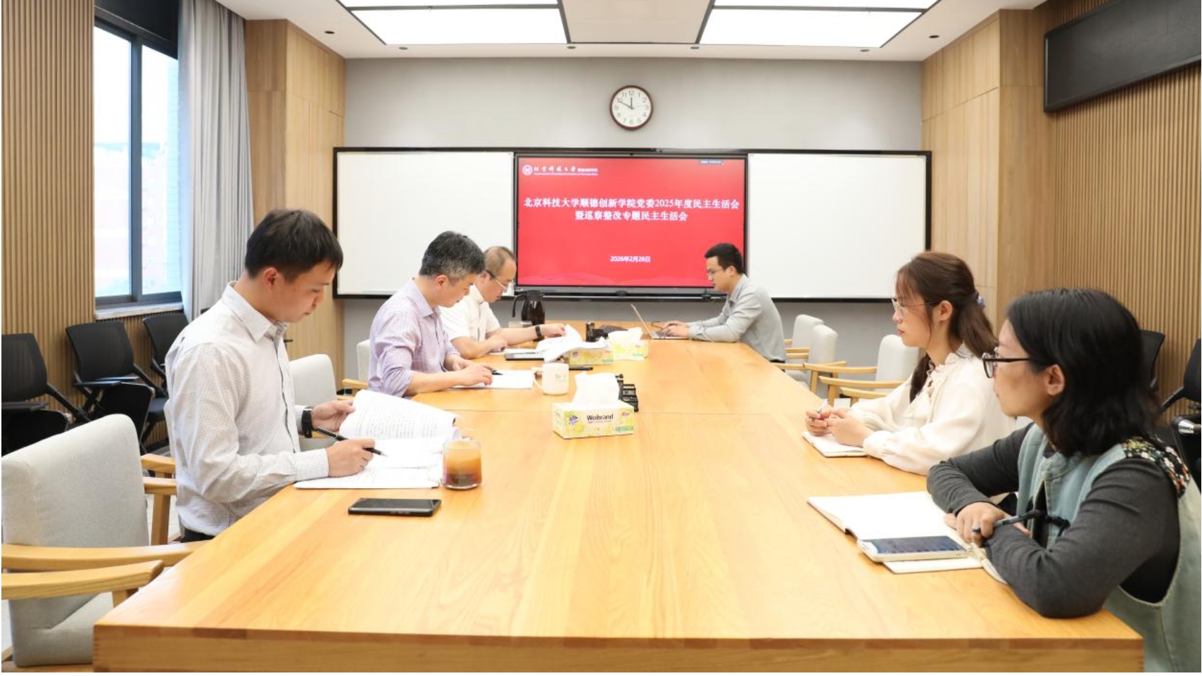 2月28日,香蕉视频 党委召开2025年度民主生活会暨巡察整改专题民主生活会。学院党委书记郭东旭主持会议并作总结讲话,院长何新波、副院长谭豪参加,相关职能部门负责同志列席。