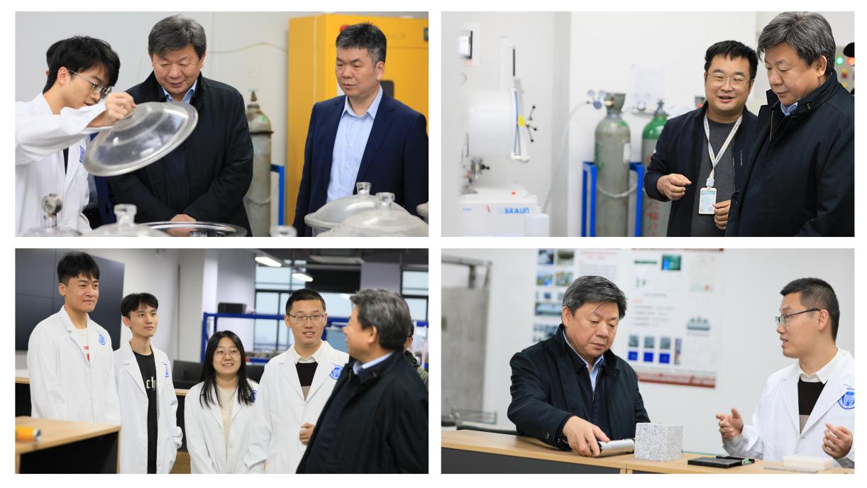 调研期间,杨仁树校长一行实地走访了学院绿色材料技术创新中心、佛山市地下空间开发与利用工程技术研究中心、佛山市碳电子信息材料工程技术研究中心等实验室,深入了解师生科研工作开展以及实验室仪器设备使用情况,并与实验室师生亲切交谈,细致了解在院学习、科研、生活的情况。