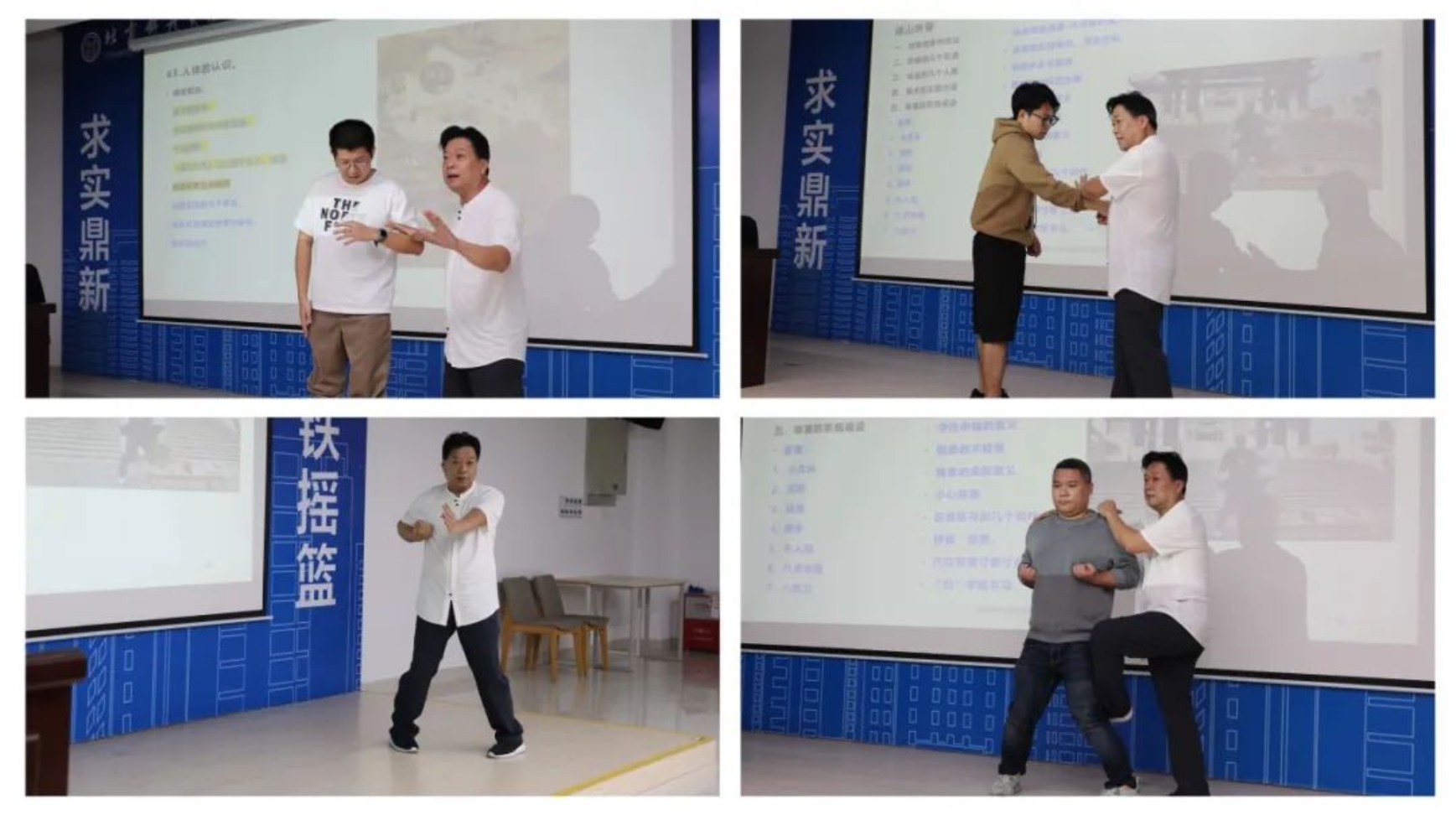 佛山崇文尚武,素有武术之城等美誉。高原老师还讲解了岭南功夫文化,现场展示了咏春拳,并与现场师生进行互动。他指出,咏春拳作为一种古老的武术形式,不仅注重直线攻防和内力修炼,保留传统特色的同时,还积极融入现代自卫技巧、健身训练甚至影视文化效果,这种融合使咏春拳更加适应现代社会,也在国际上广受欢迎,成为文化交流的重要载体。通过跨文化交流与传播,咏春拳不断刷新其全球影响力,展示了一种生动的文化传承与创新实例。高原老师鼓励大家通过学习和练习武术,锻炼身体,培养坚韧不拔、积极向上的生活态度。