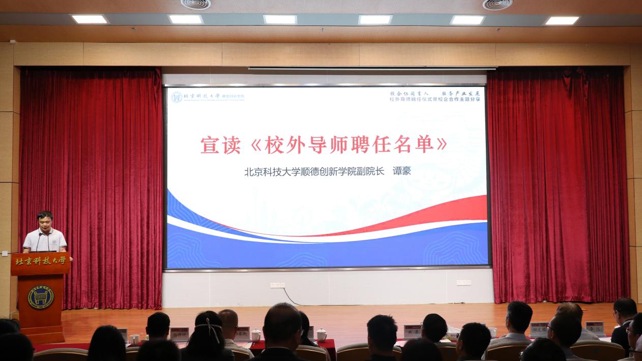 谭豪宣读《校外导师聘任名单》,35位来自智能制造、新能源、先进材料等领域的行业专家受聘为学院校外导师。